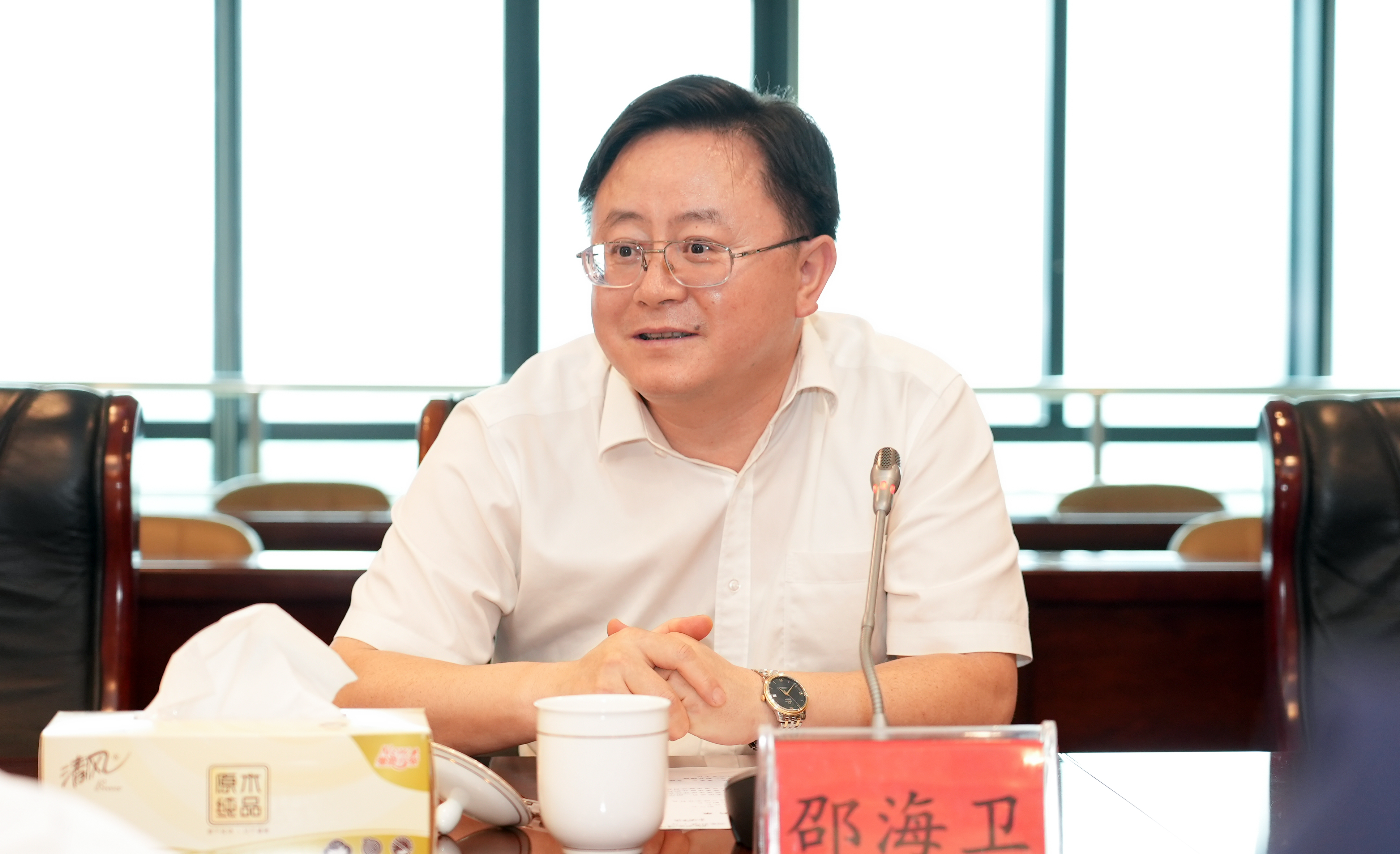 7月12日,安徽省司法廳黨委委員、副廳長蔣文斌和省文化和旅游廳黨組成員、副廳長邵海衛一行到安徽新媒體集團調研。集團黨委書記、董事長、總經理章理中,黨委委員、副總編輯陳寶紅陪同并座談交流。