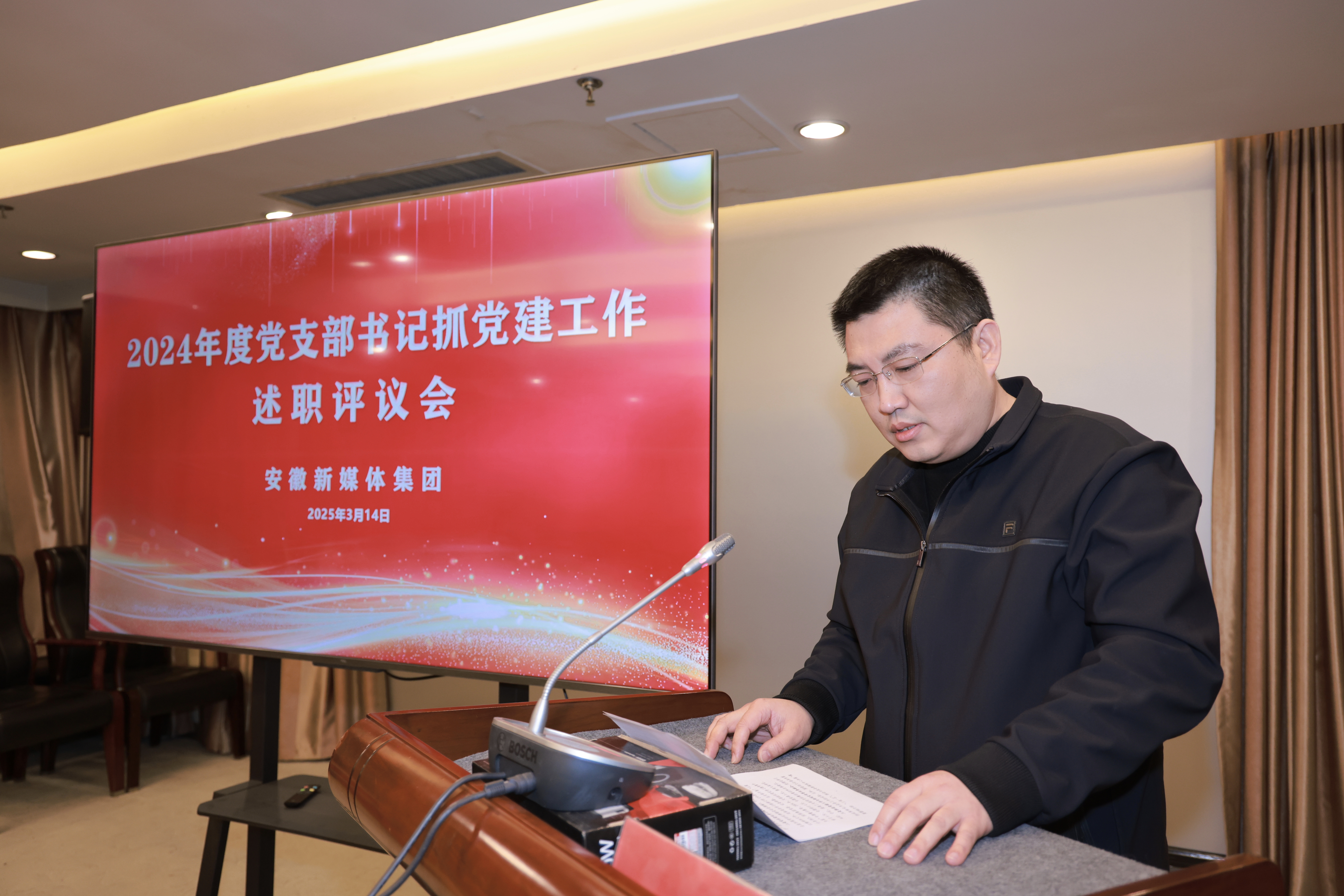 3月14日,安徽新媒體集團召開2024年度黨支部書記抓基層黨建工作述職評議會,對一年來集團各黨支部書記履職盡責(zé)情況和重點黨建任務(wù)落實情況進行全面檢視和總結(jié)。會議由集團黨委書記、董事長、總經(jīng)理章理中主持,集團黨委班子成員,各黨支部書記、副書記以及部分黨員代表,有關(guān)政協(xié)委員及民主黨派人士參加會議。